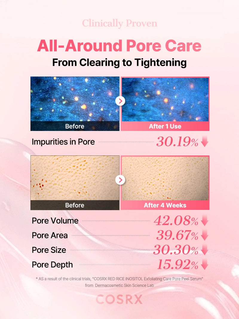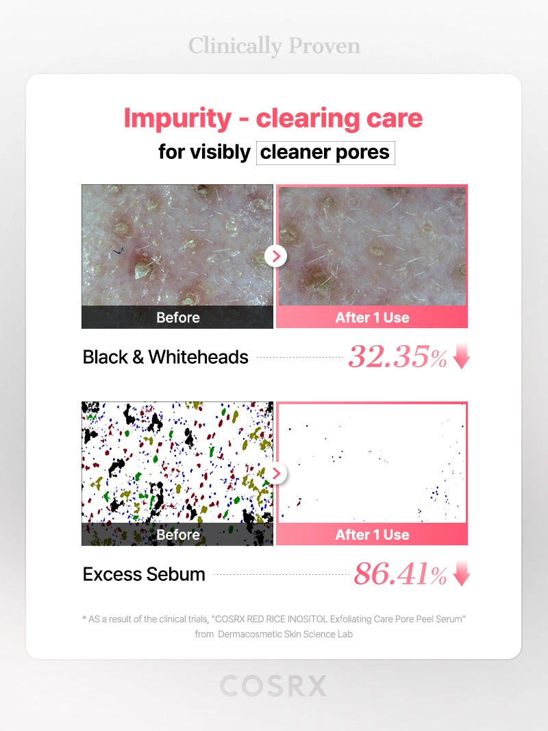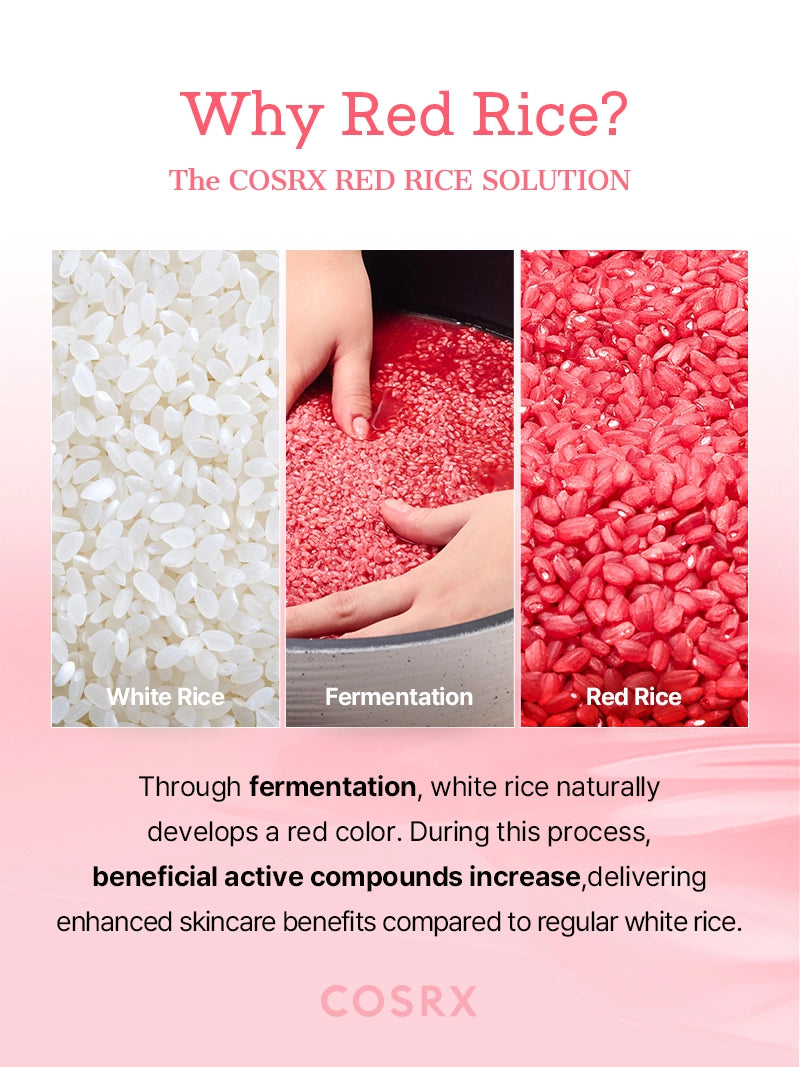 Fermented red rice with 2x more active ingredients than conventional rice, gently caring for dead skin cells and excess sebum for a visibly cleaner, more refined complexion.