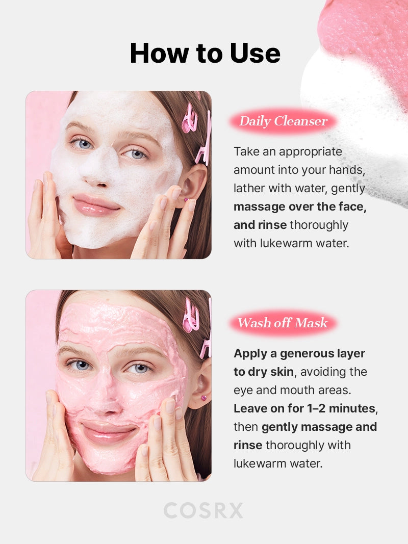 1. As a daily cleanser, dispense an adequate amount onto your hands, lather with water, and gently massage over the entire face before rinsing.