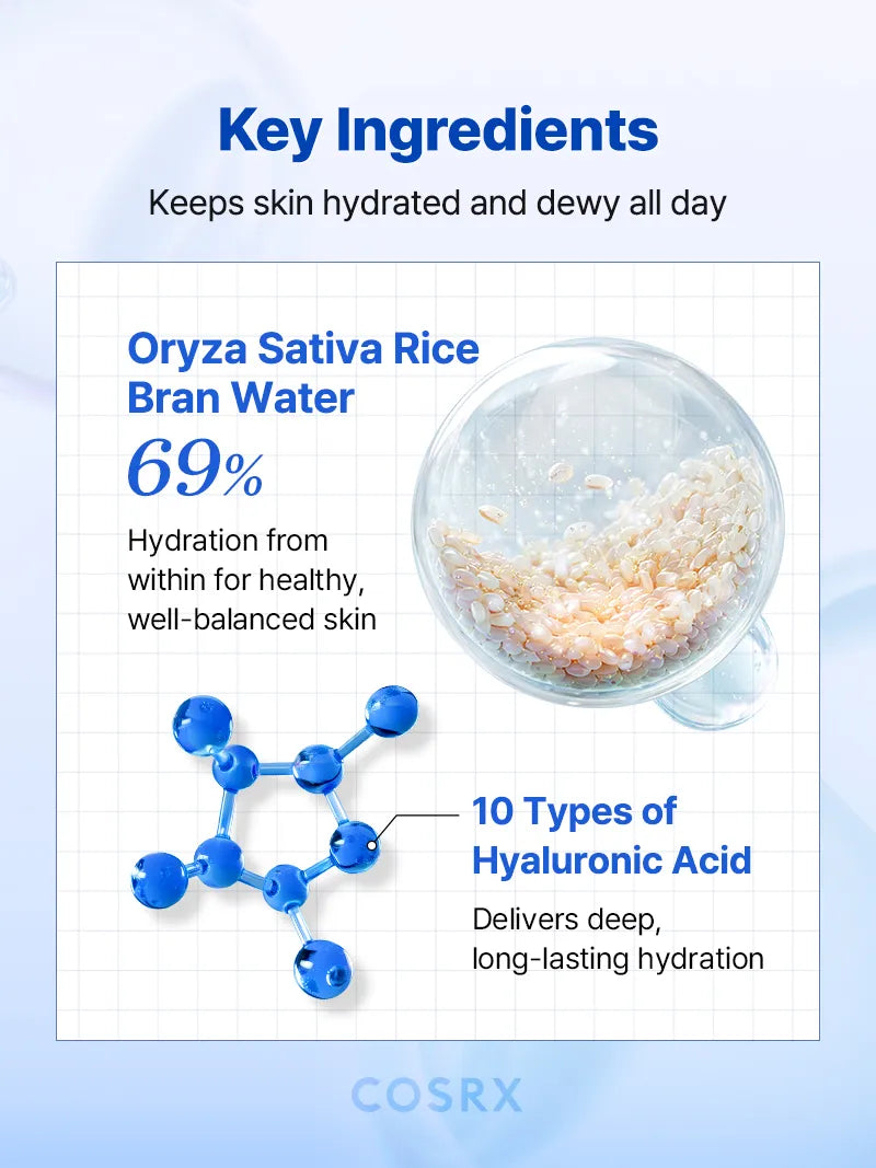 Drenches skin in 69% rice water to deliver deep hydration and visibly clearer-looking skin in one swipe. Formulated with a 10-type hyaluronic acid complex and a brightening-focused blend, these pads help replenish moisture, visibly even the appearance of skin tone, and help soothe the feel of heat-stressed skin for a plump, radiant finish.